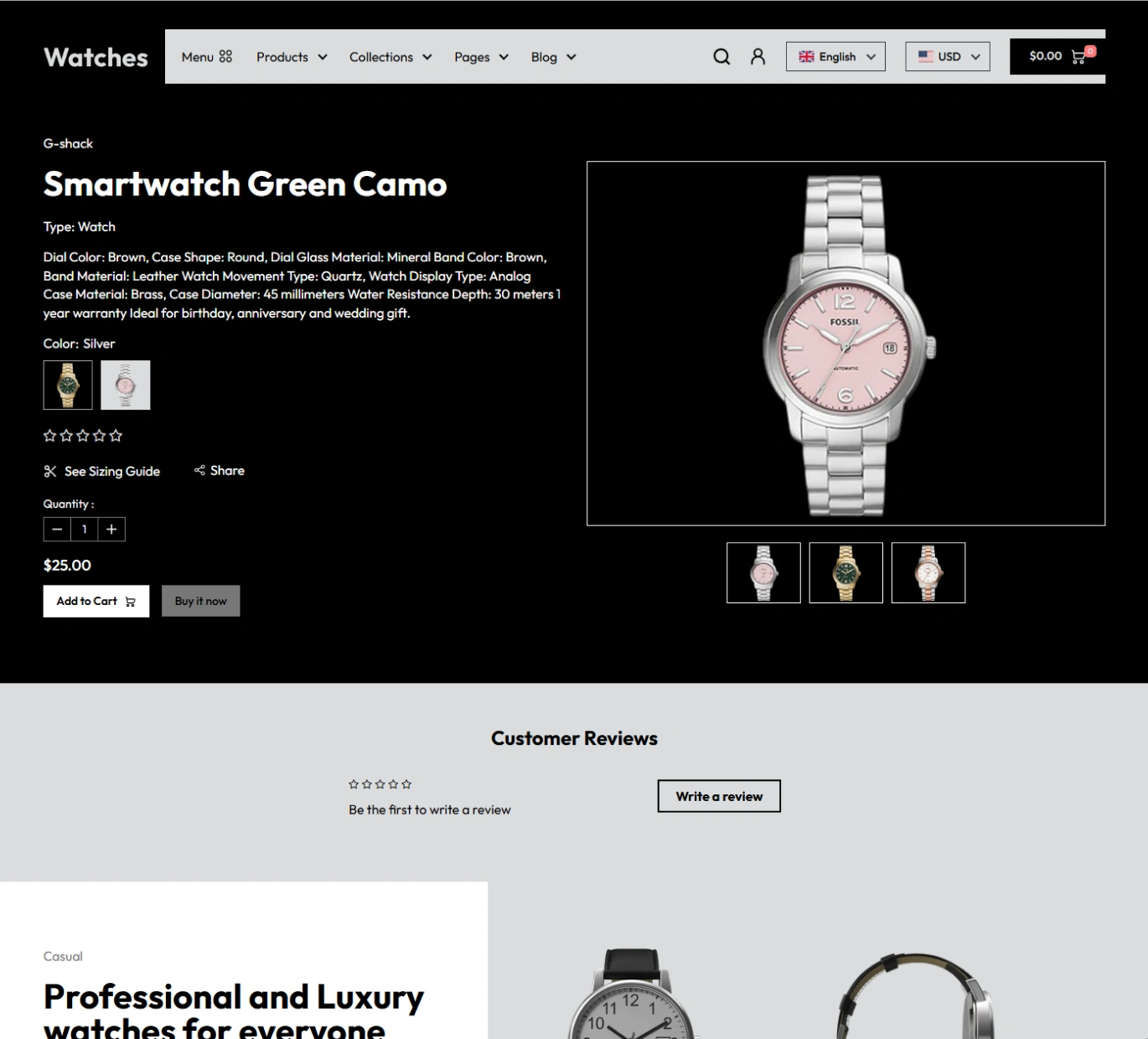 Customer reviews are vital for credibility in the e-commerce space. The Watches Shopify Theme includes a built-in review system, allowing buyers to leave feedback on products. Displaying these reviews in your watch template builds trust and helps potential customers make informed purchasing decisions. Positive reviews not only increase confidence in your brand but also enhance your watch website design, improving SEO and engagement.