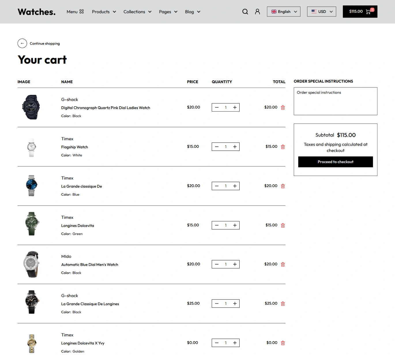 Yes, the watch store theme supports multi-currency options, making it easy for international buyers to shop in their preferred currency, boosting sales on your watches powered by Shopify site.
