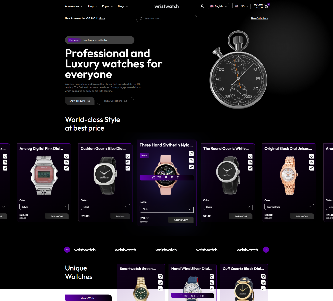 Design a Professional Watch Website Template for Modern E-Commerce
